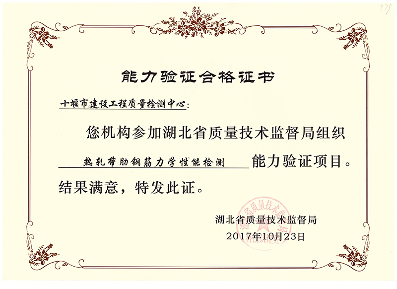 2017.10.23湖北省質量技術監(jiān)督局熱軋帶肋鋼筋力學